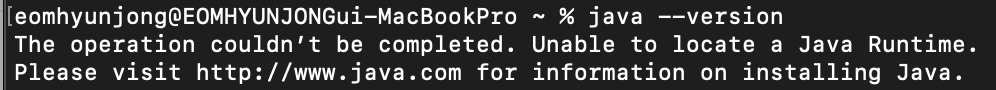 java 명령어에 대해 실행할 수 있는 binary 파일이 지정되어 있지 않아서입니다.