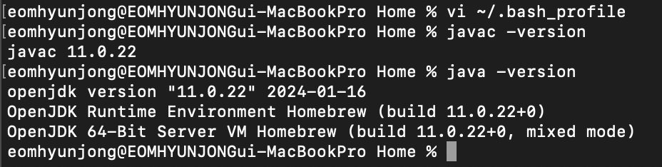 export JAVA_HOME=/Library/Java/JavaVirtualMachines/(본인이 설치한 jdk).jdk/Contents/Home