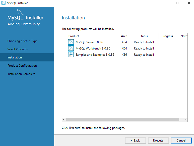 [Excute] 버튼을 클릭하여 설치 합니다.
