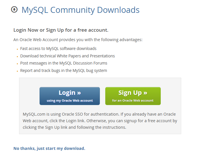 하단의 No thanks, just start my download.를 클릭하면 로그인을 하지 않아도 파일을 다운로드 할 수 있습니다.