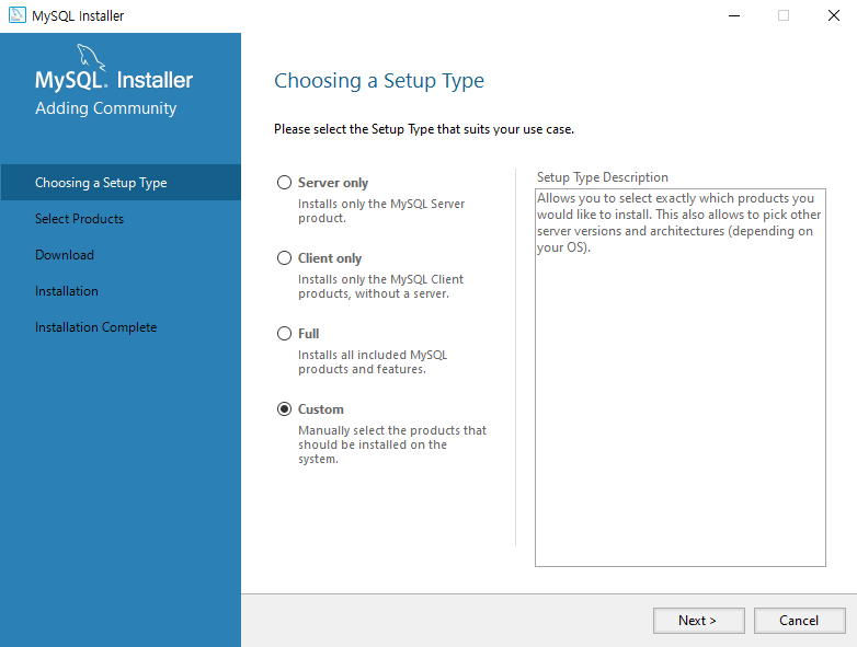 Custom을 선택해 필요한 부분만 설치하겠습니다.